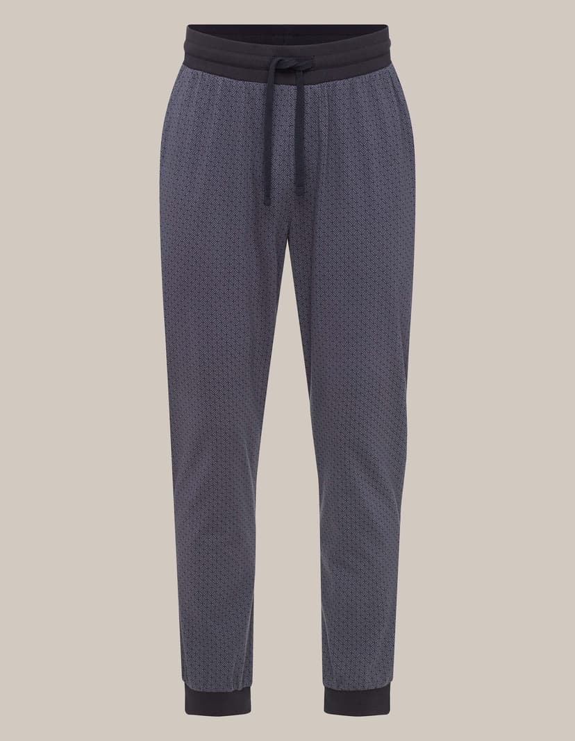 Luźne, przewiewne i w 100% z bawełny – właśnie takie są spodnie Harper, które zapewniają pełną swobodę podczas domowego odpoczynku. Dzięki sznurkom w pasie łatwiej dopasować je do sylwetki. Nieuciskające ściągacze w kostkach trzymają z kolei nogawki na miejscu. Dodatkowo te męskie spodnie wyróżniają się geometrycznym printem z literą H.